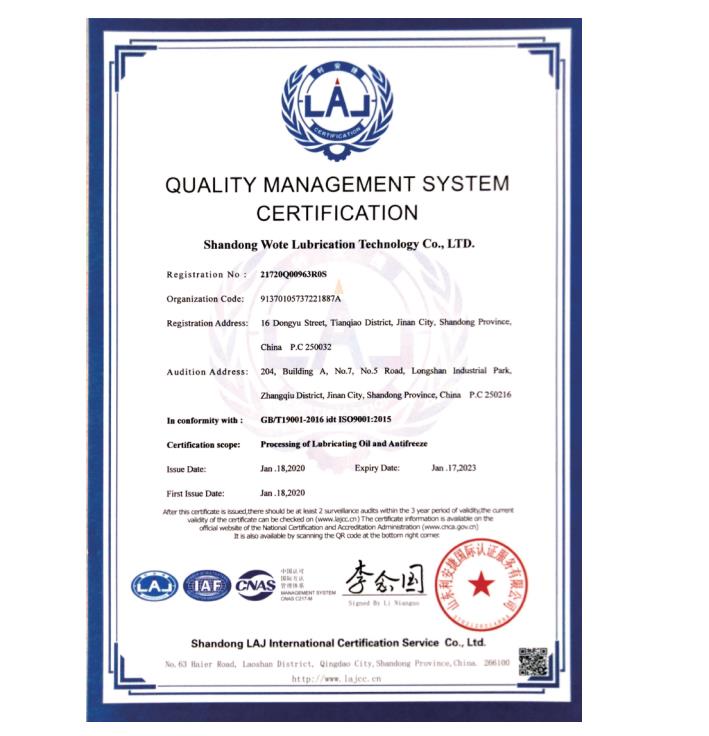 質量管理體系認證證書英文版